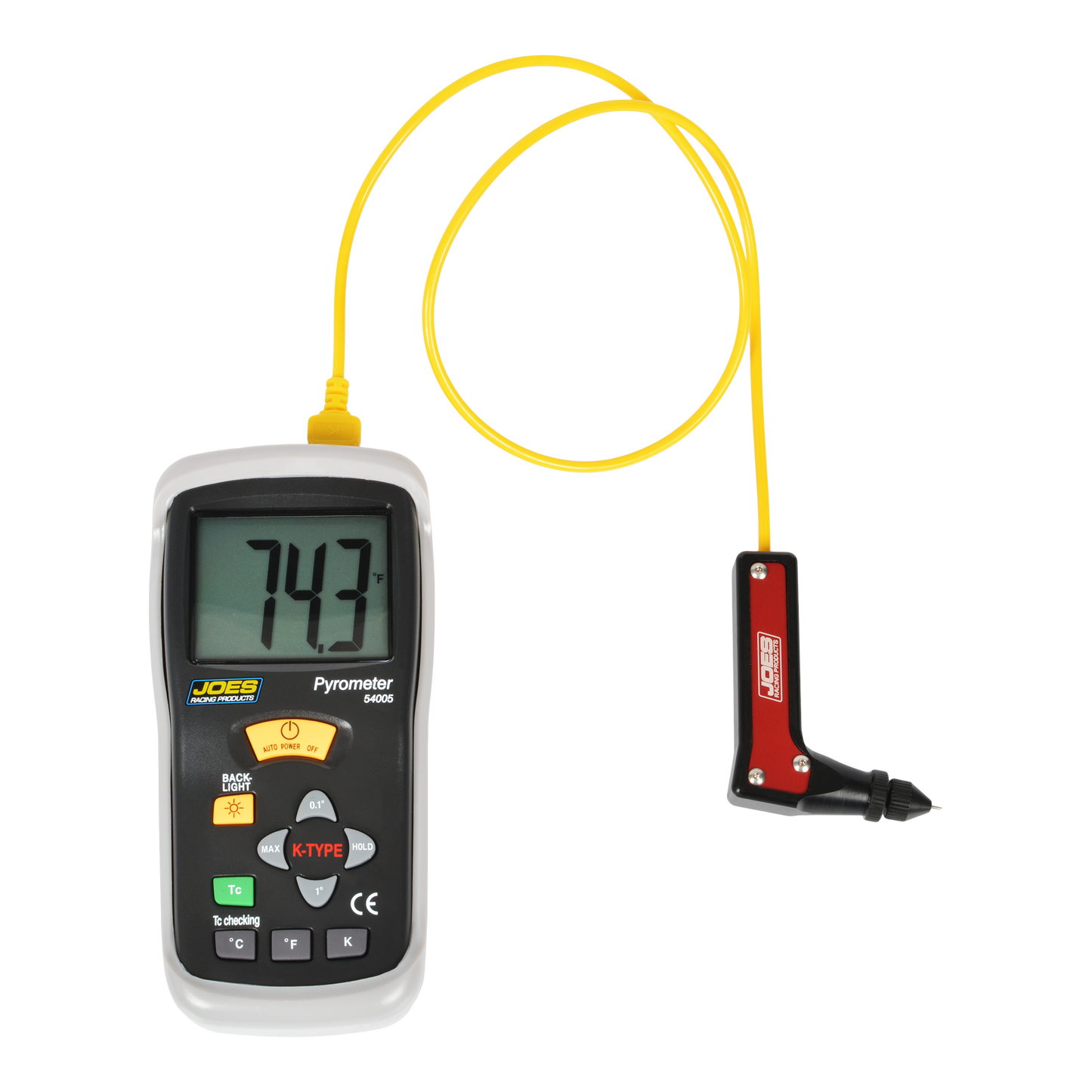 Take precise temperature measurements with ease using the JOES Racing Products Deluxe Pyrometer. This advanced pyrometer is designed for accuracy and convenience, featuring an adjustable probe and a robust carrying case for optimal protection and portability.
