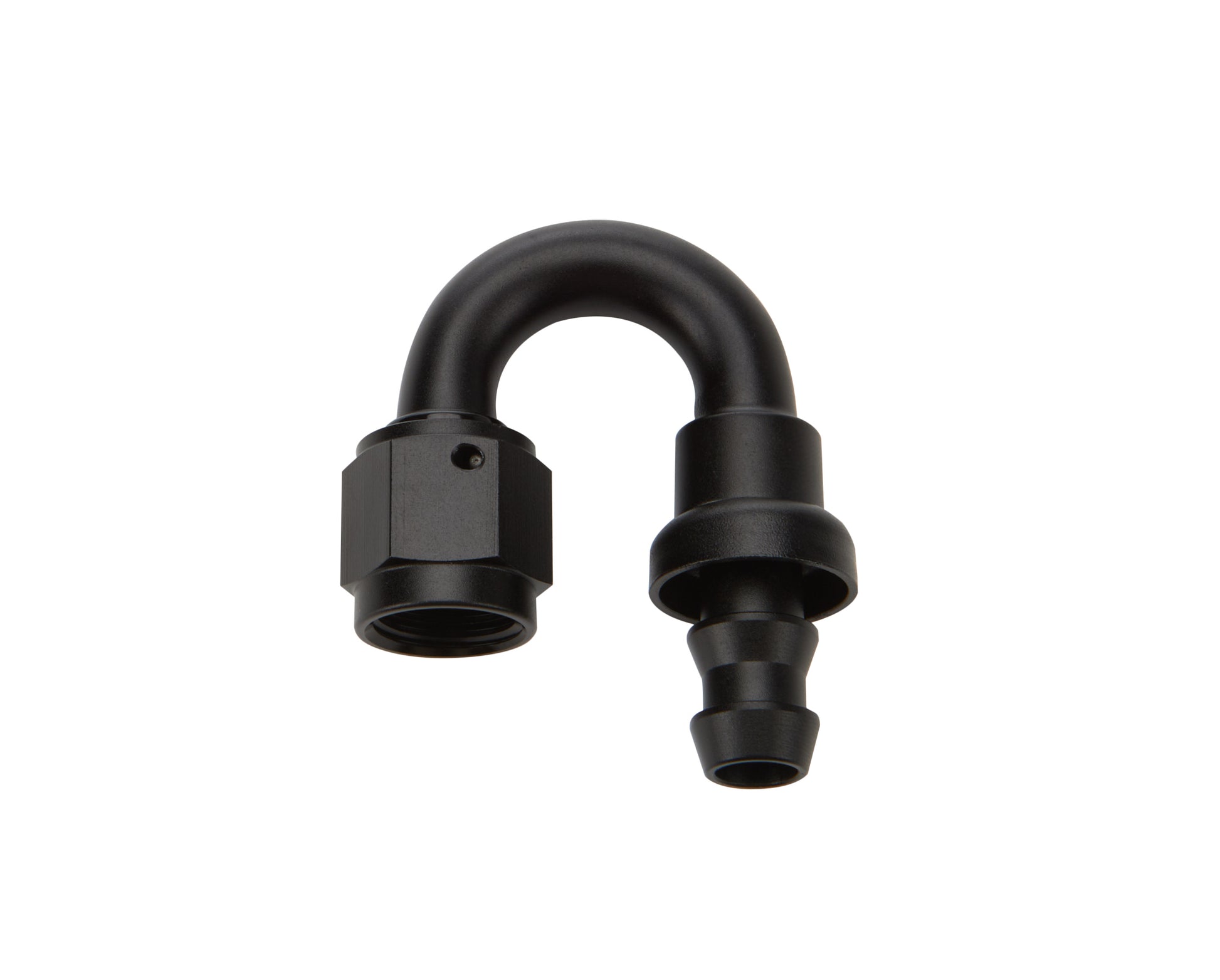 Fitting - Hose End - 180 Degree - 6 AN Hose Barb to 6 AN Female - Aluminum - Black Anodized - Each