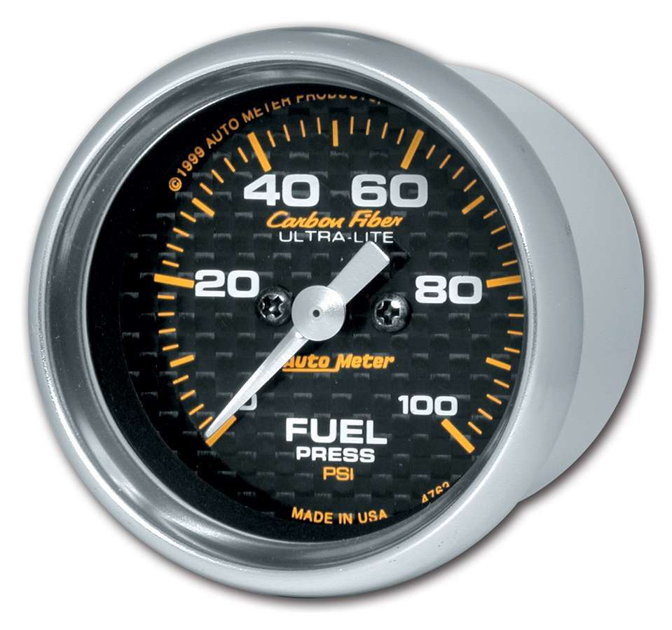 Fuel Pressure Gauge - Carbon Fiber - 0-100 psi - Electric - Analog - Full Sweep - 2-1/16 in Diameter - Carbon Fiber Look Face - Each