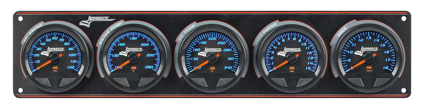 SMi™ Elite Waterproof Gauge Panel from Longacre, 4 Gauge Oil Pressure/Water Temperature/Fuel Pressure/Volt/Tach