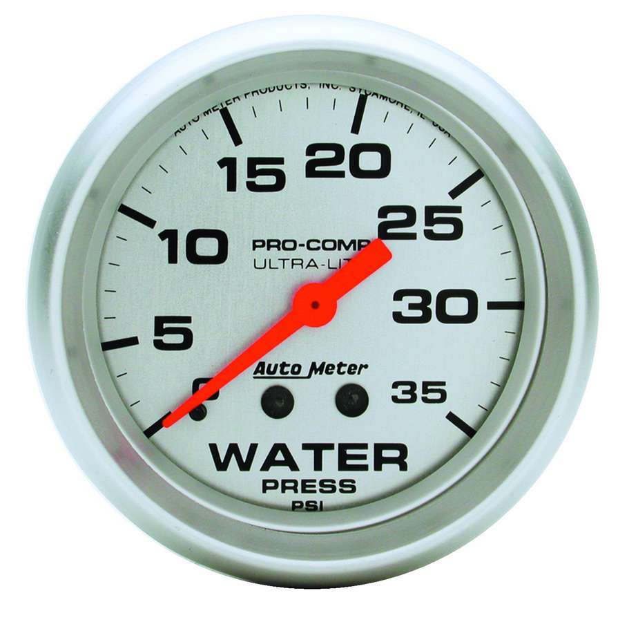 Water Pressure Gauge - Ultra-Lite - 0-35 psi - Mechanical - Analog - 2-5/8 in Diameter - Silver Face - Each